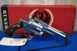 4" Stainless Barrel; wood factory grips; 6-shot swing out cylinder; original red Ruger box; used but nice and clean; USA; SN#153-26673; A-196