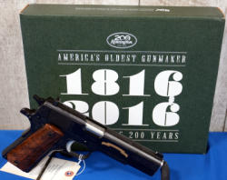 Mint & NIB; includes just the green Remington box; correct paperwork; 2-magazines; Highly engraved slide and frame w/high gloss finish grips; night sights; gold inlay of Bicentennial logo, Man Walking; 1 0f 2016 made; USA; SN#R120160513; A-196