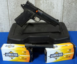 5" Golf Finish Barrel; composite textured grips; hy-vis night sights; has a hard case but NO FOAM inserts; one magazine; appears unfired & new; USA; SN#KF146147; A-210