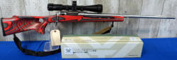 26.5" Stainless Fluted Bull Barrel; smooth action; red laminate wood grain thumb hole stock; sling; Vortex HS-T 4-16x44 scope w/scope box; used but great condition; USA; SN#G139103; A-210