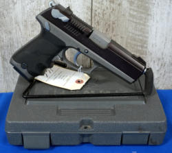 4.25" Stainless barrel; two tone w/different color slide; rubber grips; 2-magazines; night sights; factory hard case; used; USA: SN#341-20751; A-190