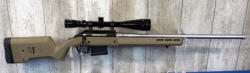like new; 26" Stainless Threaded Savage Pre-Fit Barrel; 2-magazines; Hunter American Magpul light brown synthetic stock; Japanese made Tasco 6-24x44 nice scope; USA: SN#691526260; A-201