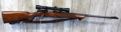 24.5" BBL; smooth action; removable magazine; very nice wood stock and good bluing; Weaver K4 scope; leather sling; hard gun to find; standard config; USA; SN#38309A; A-194