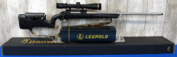 24" Fluted Bronze Finish Barrel w/2" Flash hider; camo synthetic stock; removable magazine; smooth action; factory box; high end Burris Eliminator III 3-12x44mm scope w/box; like new used condition; Japan; SN#JP64382YY354; A-210