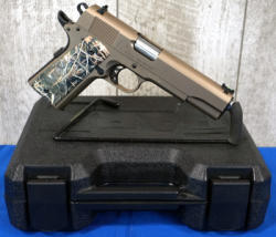 3" BBL; bronze frame w/black slide & rubber textured grips; night sights; factory hard case; plastic holster; looks new & unfired; USA; SN#52B159016; A-183