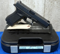 4" BBL; used but nice and clean; has a few spots of bluing loss; checkered wood grips; 6-shot swing out cylinder; comes w/a Glock hard case; USA; SN#C882557; A-190