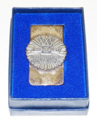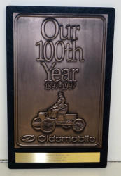 15"x9.5", Brass on wood, heavy and very nice with the Curved-dash Olds graphic