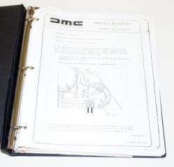 I'd guess over 100 pages of Service Bulletins all on the DeLorean, in a generic black binder, some general wear, but unique