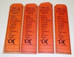 one with 1950's car from Wadena, MN is near mint, other has antique-style auto and from Cherokee, IA with light wear, both to go