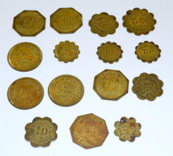 largest are about 5.5" long, all have light wear, I believe these came with pinback buttons originally