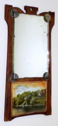 11"x6", wood with plate glass mirror, some water stains on the artwork on the bottom