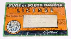 3.75"x6", applied to the back side of a piece of glass, this is a Retail Sales & Use tax license from war-time