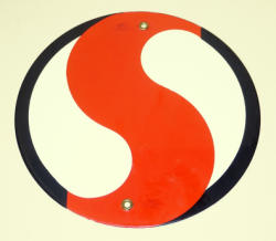 22"x7", dated 1938, faded and worn, barn hanger/patina sign, has the tube