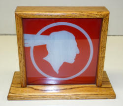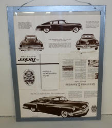 has been sandwiched between two pieces of plexiglass to display, some normal wear, hard to find anything of original advertising for the Tucker!