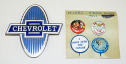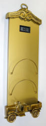 23" tall, 8" wide, antique brass finish, similar to the Chevy award desk clocks and pen holders, not marked Chevy, but Marv told me it was an award from them, mint in the box