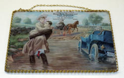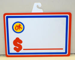 neat piece, 8"x4.5" plus the hanger, held the price card inside, I'm sure to hang from the rear few mirror, heavy embossing, near mint