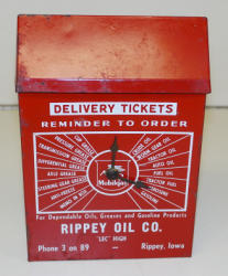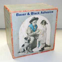 10"x10"x7", heavy cardboard with paper front, great graphics, some general wear and fading
