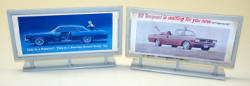 each 4" tall, 6.25' wide, plastic frames with cardboard inserts, both have some fading and wear, both to go