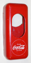 9"x7.5"x4" deep, heavy steel with paper label, label has some wear, drop in a penny and pull out a cover for the seat!