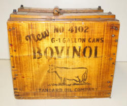 held 6 1-gal cans, has been varnished, but great graphics and even the original lid
