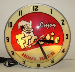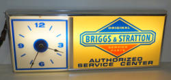 15"x37", works good, metal body w/ plastic face, a few small hairline cracks in the clock face, ad side is slightly discolored, but looks great when lighted