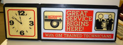 16" tall, 48" long, non-lighted, battery op clock is working, some light wear from use