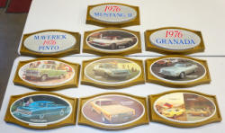 each is 12"x22", lightweight plastic, all clean and near mint, looks like they were never used, includes the Ford Pickup, Thunderbird, and Pinto, sells as a set; found here at the Ford Dealership in Worthington