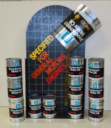 30" tall, 16" wide, runs off 2 D batteries, looks like the oil is pouring out of the can, comes with several never filled cardboard oil cans too, neat display, some fading and wear