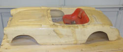 rough original body has some large chucks missing and some cracks, includes the original frame in good condition plus some original parts; Marv thinks he has the wheels too, but hasn't found them yet; has a heavy wood crate included so you can get it home