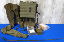 Long 6-1918 gunner's belt, with metal cup for the buttplate and 2 M1911 magazine pouches. Includes 2 Parkerized BAR magazines; nice original
