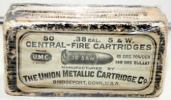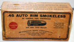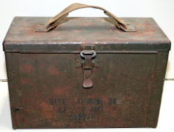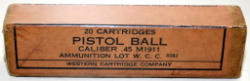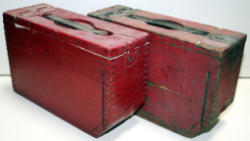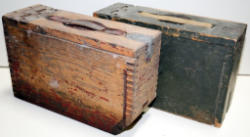 nice wood box w/great stenciling; includes 3 boxes of original ammo; box is 16" long