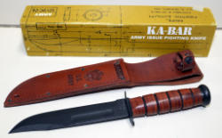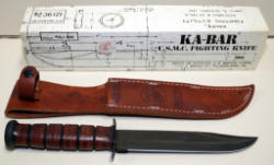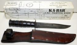 knife is not marked KA-Bar but came with that box; knife & leather have some wear; box is nice; blade is 6.5" long