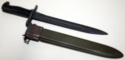 nice original; hard plastic scabbard w/green web strap; plastic checkered grips; blade is 6.5" long;