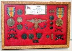 all in nice little wooden showcase; big eagle in middle is 4" long; showcase is 12.5"x8.5"