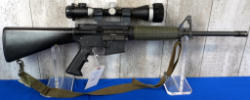 DoD stamp on mag well. green stocks, 20" BBL w/2" flash hider; sling, 10 rnd. Magazine; carry handle top; nice condition; USA; SN#US563190; A-192