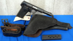 3.25" BBL; period correct black leather holster; one magazine w/pinky rest; bluing is starting to thin; dated 1937; Italy; SN#561713; A-192