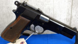 4.75" Stainless Barrel; Belgian proofmarks, fixed sights, red-backed wood checkered grips. SARCO import marked (on frame, below barrel). 1 RA marked magazine; Belgian; SN#41836; A-192