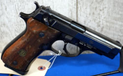 5" BBL; cyq marked slide, all visible numbers match, brown grips. Period re-blued jvd magazine. Reimport stamped on the bottom of the barrel; Germany; SN#9381r; A-192