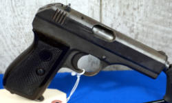 3-7/8" BBL; Waa 76. Parkerized. 1 marked mag; dark brown plastic checkered grips; fixed sights; Germany; SN#452564; A-192