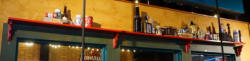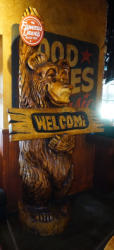 about 14' long, 2' tall, painted with some Christmas lights around the side that are not all working, Buyer responsible for removal, chained up behind the bar, going to need a ladder