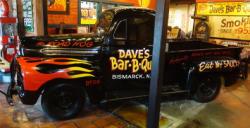 a Bismarck icon! Old truck that has been repainted and lettered to a Famous Dave's Theme, has been sitting for over 20 years in the Restaurant, has a title, but not running, windows have been painted, buying as is. NOTE ON PICKUP: Buyer will have to arrange a time with the manager after the standard load-out to load and move the truck, a wall that used to be a garage door will have to be taken out to get the truck outside, Buyer will schedule with Dan or Brad