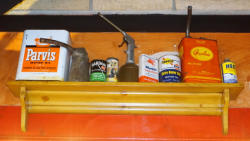 about a 10' long shelf with all the items glued down, going to take some work to remove, buying as-is