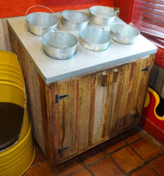 used to hold condiments and silverware, 27" wide, 37" deep, 43" tall at the back, pickup only in Bismarck