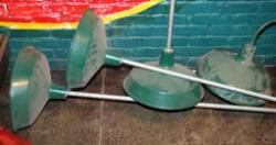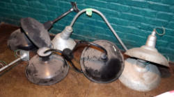 3 are done; rest are still having in South Dining Room; buyer responsible for removal; galvanized shades are 21" in diameter; Large Item Load out