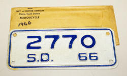 has "Bennie Chocholcuske" written on the front of the plate, but includes the original registration card for his '53 Indian Brave too! Neat piece of history, he was from Gregory, SD