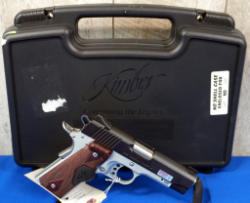 4" stainless barrel; checkered synthetic grips w/Crimson Trace laser sight; blued slide w/stainless frame; factory hard case; used but very clean; USA; SN#KR187867; A-244