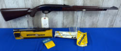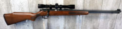 22" BBL; smooth action; hooded front sight; Simmons 4x32 scope; nice wood stock; very clean used condition; USA: SN#08597841; A-247