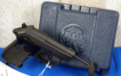 4" BBL; night sights; black synthetic frame; factory hard case; looks new & unfired; Germany; SN#FAR9938; A-248