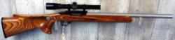 20" Varmint Stainless Butler Creek Barrel; Wood Grain Laminate Stock w/Thumb hole grip; Bushnell Banner 22 Scope; removable magazine; nice looking setup; USA; SN#232-40329; A-240