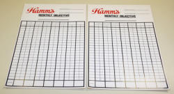 each 16.5"x11.5", never used, some edge wear, unique showing goals and actual sales including Waldech, Buckhorn & Tappers, sells 2x the money